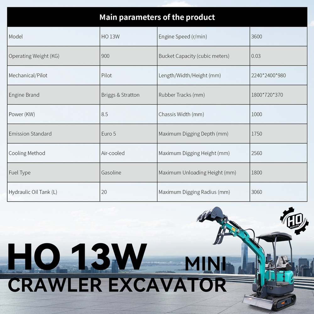 The Standard Bucket Capacity Is 1.059 Cubic Feet, Supporting Optional Attachments Such as Hydraulic Thumb Grapples and Ripper Teeth to Effortlessly Handle Diverse Tasks Including Excavation, Material Handling, Demolition, And Trench Clearing