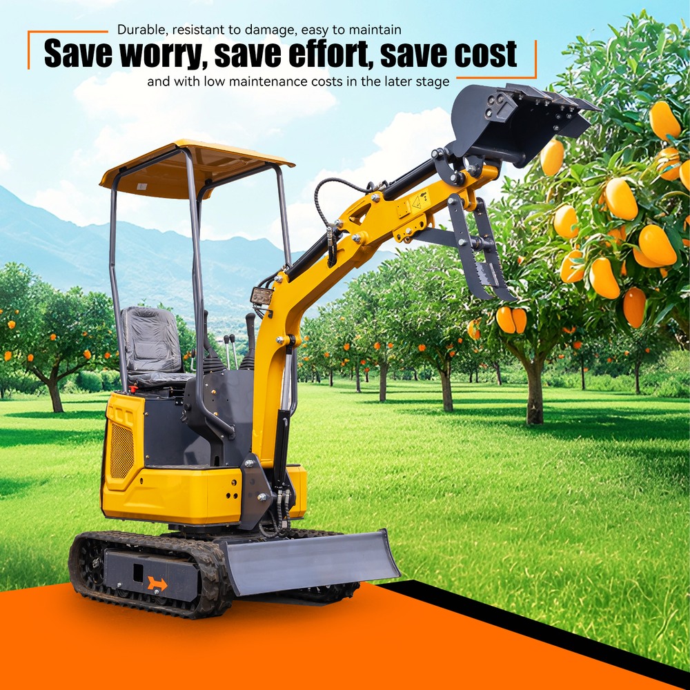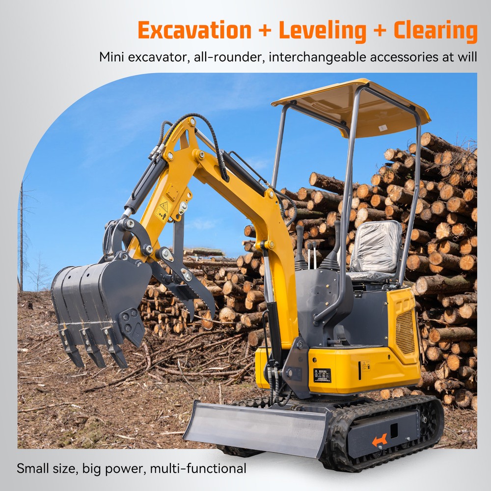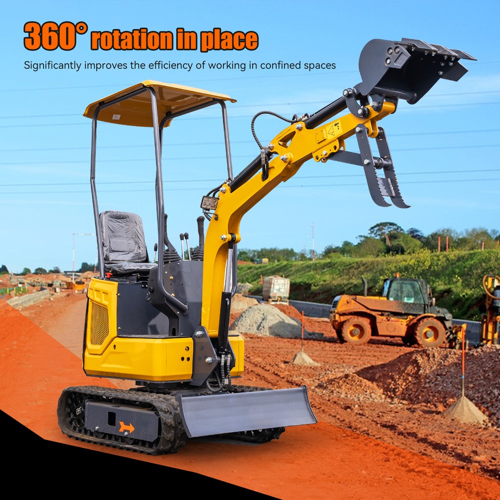 Standard Configuration Includes a 0.64 Cubic Foot Bucket and a Working Weight of 1410 Lbs. Quick-Change Attachments Such as the Hydraulic Thumb Gripper Enhance Its Versatility. The Hydraulic Grab Can Firmly Grip Branches, Rocks, And Other Materials, Making It Suitable for Clearing Ditches, Demolishing Small Structures, And Moving Heavy Objects, Expanding the Excavator's Versatility to Meet Agricultural and Landscaping Needs